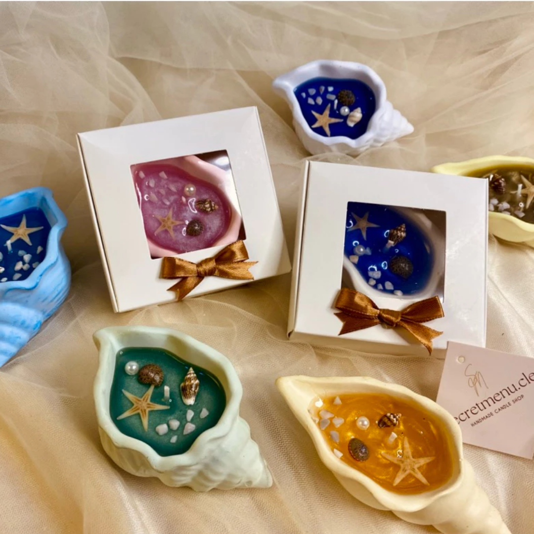 Nến Thơm Vỏ Ốc Đại Dương Bling Bling là một trong những thiết kế độc đáo và tinh xảo nhất của Chuyện của Nến, nơi mỗi chiếc nến được tạo nên như một món quà nhỏ mang hơi thở của biển. Lấy cảm hứng từ những vỏ ốc lấp lánh nằm trên bãi cát, sản phẩm được làm thủ công tỉ mỉ với hiệu ứng “bling bling” nổi bật – giúp nến trở thành một vật trang trí xinh xắn, bắt mắt ở mọi góc phòng.